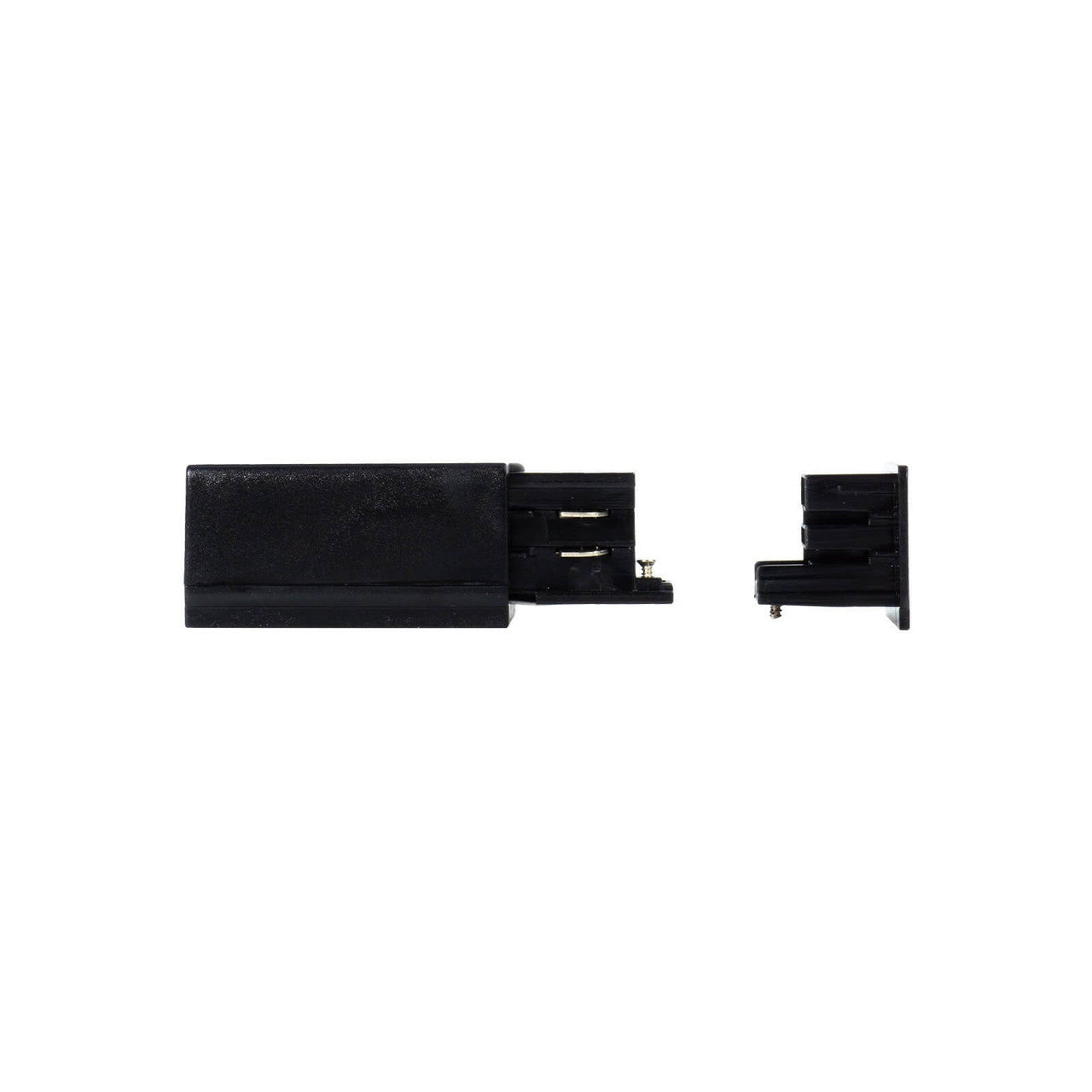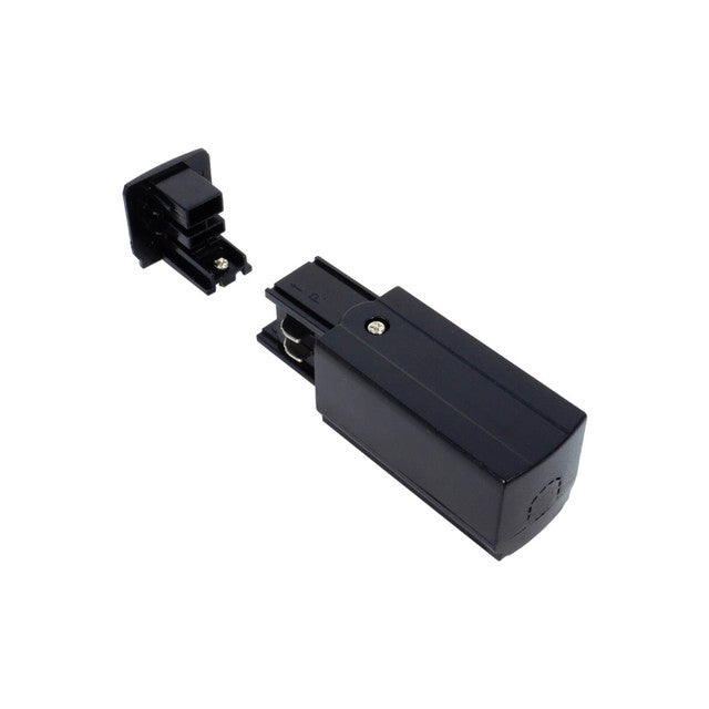 Versione Lato Destro. Nel caso nell'impianto dei binari non siano presenti curve ma sia soltanto lineare, non è necessario prestare attenzione all'acquisto della versione destra o sinistra del connettore di alimentazione.