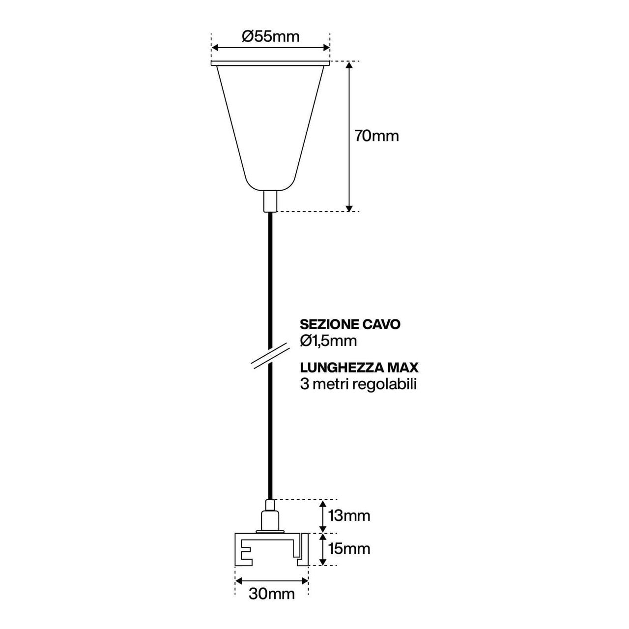 Il Kit di Sospensione per binari Trifase è l'accessorio essenziale per montare il binari sospesi dal soffitto con una distanza massima regolabile di 3m. Il kit è composto da un cavo di acciaio con lunghezza di 3m e i relativi agganci, uno per il fissaggio rapido alla parte superiore del binario e un altro per il fissaggio al soffitto in modo elegante e rifinito.